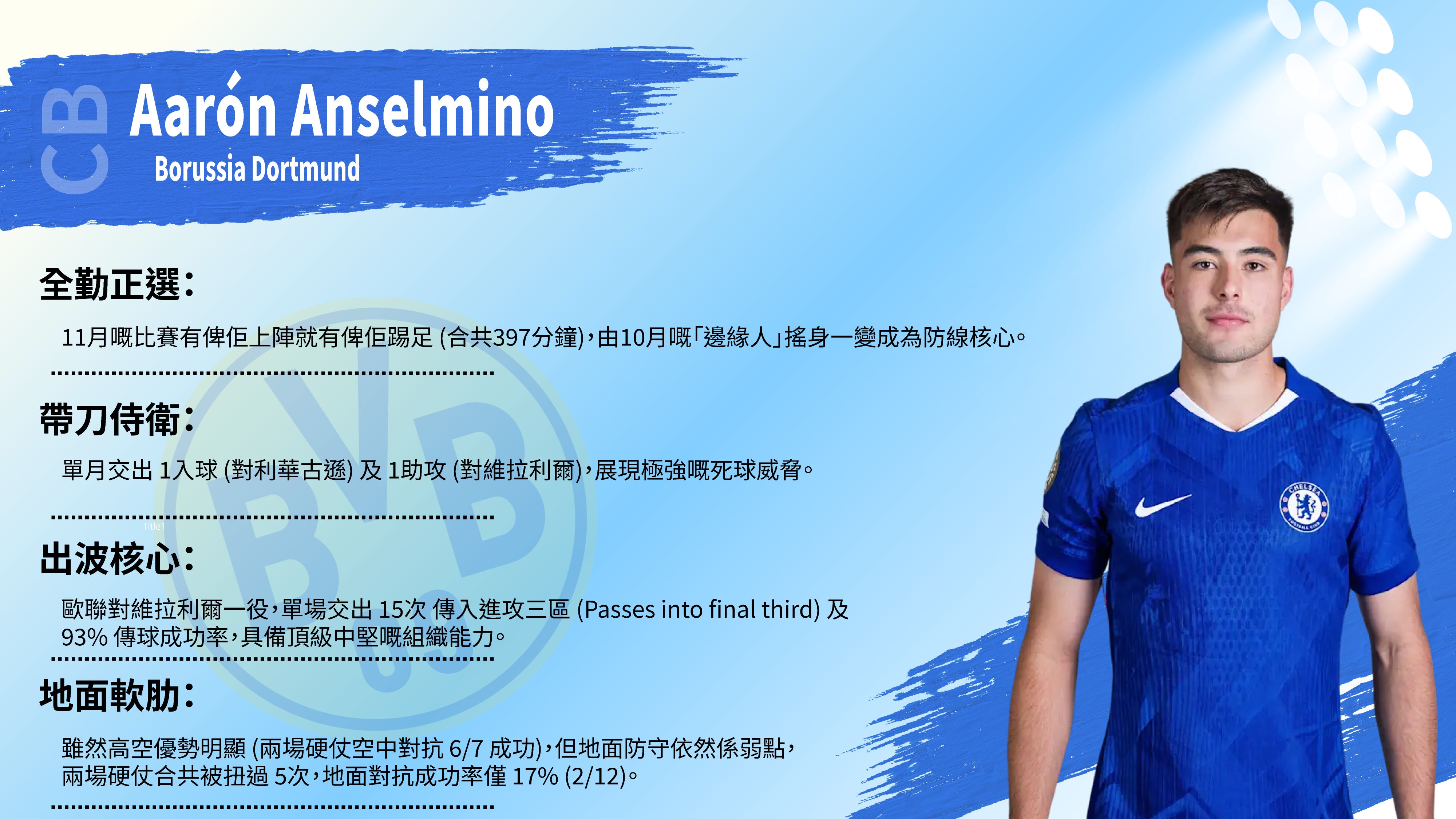 安瑟明路 (Aarón Anselmino) @ 多蒙特 (Borussia Dortmund)
