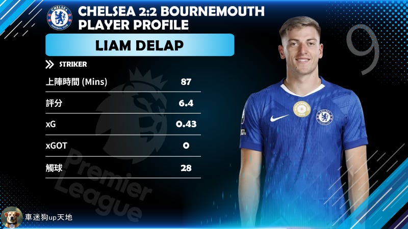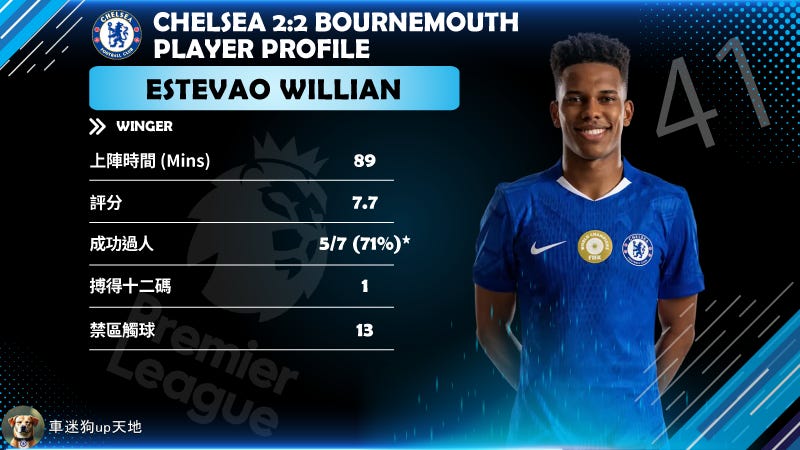 當彭馬被換走,全場進攻便秘嗰陣,係呢個 18 歲小朋友轉去唔習慣嘅左路擔起大旗,不斷嘗試撕破防線。佢展現出嘅膽識同技術,絕對係車路士 2026 年最大嘅希望。