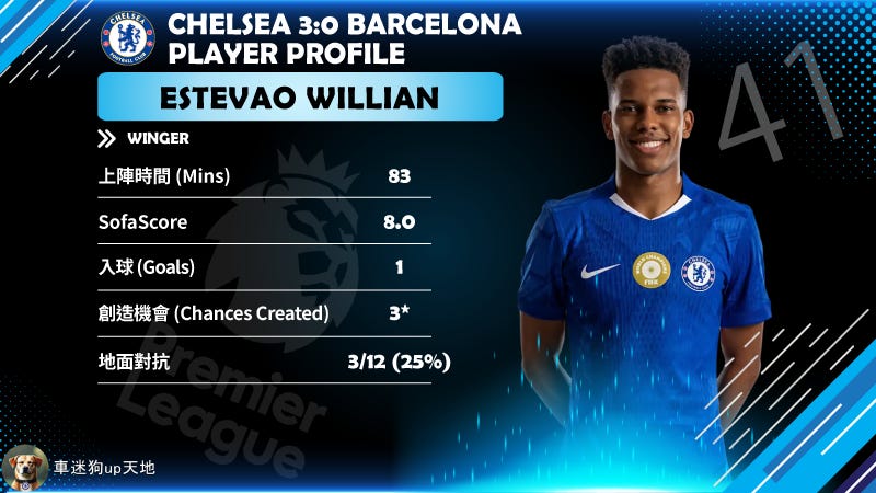但係,數據亦都好誠實咁反映咗佢嘅不足:25% 嘅地面對抗成功率,輸咗全場最多嘅 10 次對抗。對於呢點,名宿蘇拿嘅評價非常中肯:「佢做得好好,但仲有好多進步空間。隨住比賽經驗增加,佢身體會更強壯,閱讀球賽能力亦會更好。」