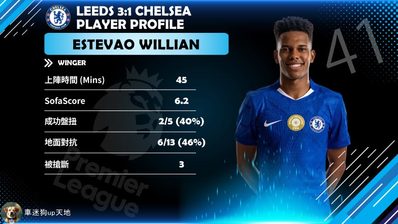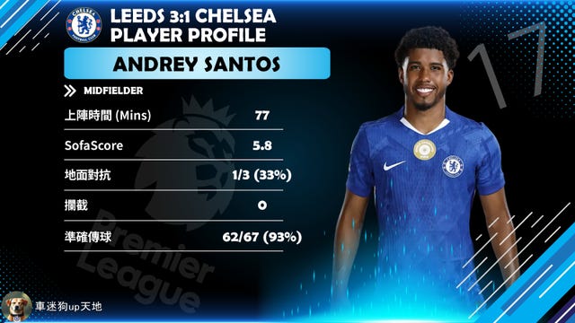 最令人擔憂嘅係防守數據:作為一名單防中,踢咗 77 分鐘錄得 0 次攔截,地面對抗亦只贏得 1 次。佢喺中場缺乏覆蓋面同硬度,令到安素要分心防守,後防線更係直接暴露喺對方火力之下。佢仲後生,有潛力,係法甲或者已經可以獨當一面,但現階段要佢喺英超高強度賽事獨挑大樑,顯然仲未夠班。