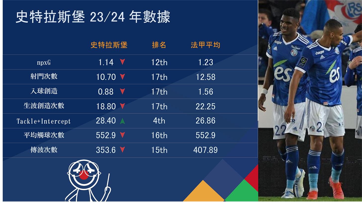 咁點解韋拉仲可以保得住唔降咁勁? 可能係因為韋拉都知自己攻唔掂,所以不如集中精神去防守,今季史堡以每場28.4次Tackle+Intercept排係法甲第4