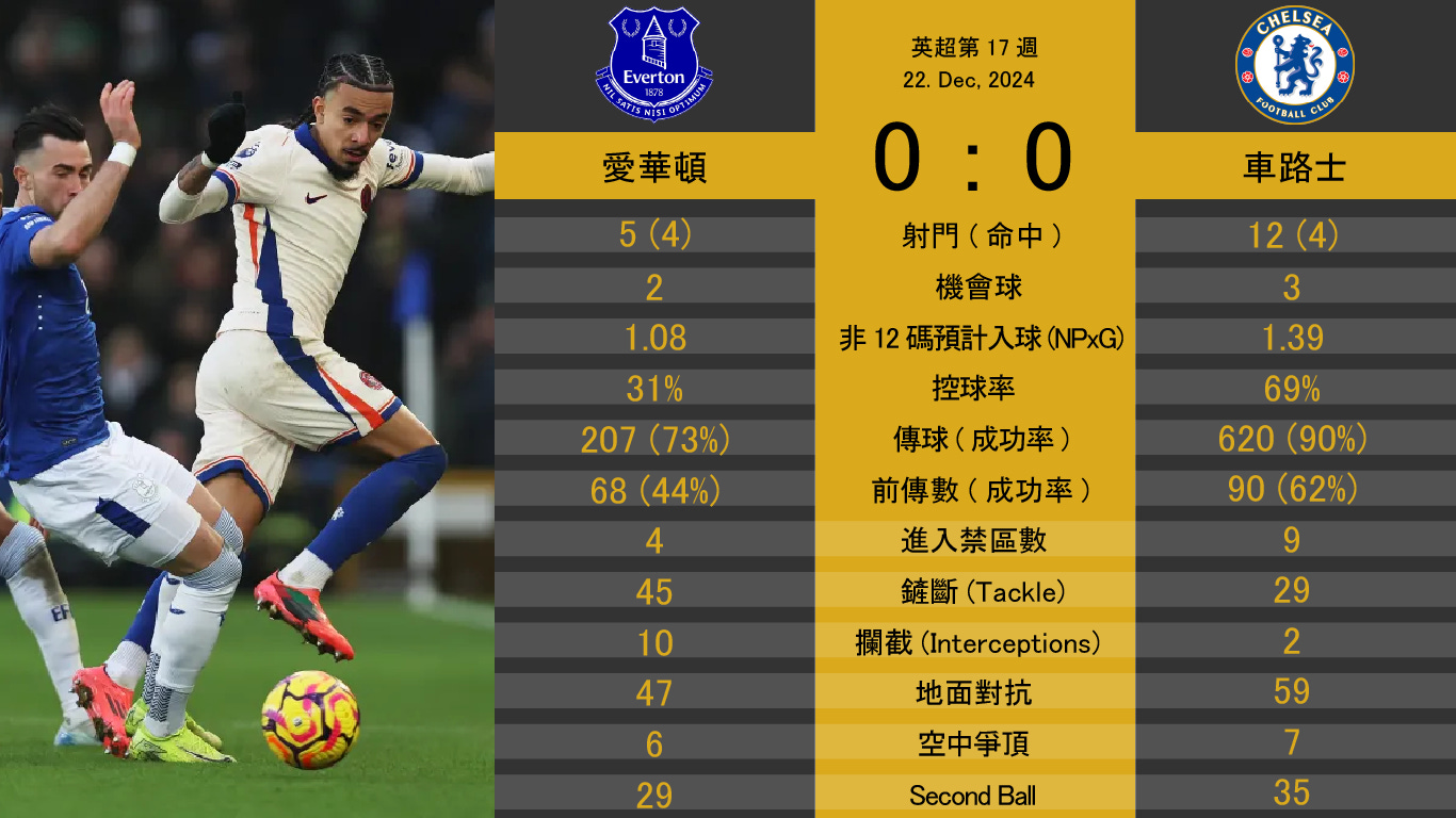 【賽後報告】愛華頓0:0車路士 拖肥超技術力保不失