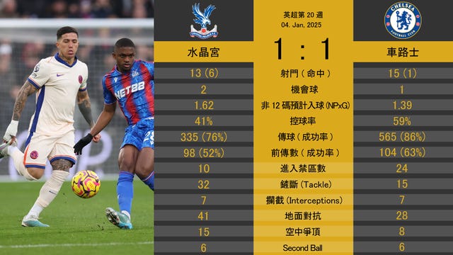 【賽後報告】水晶宮1:1車路士 把握力成比賽分野