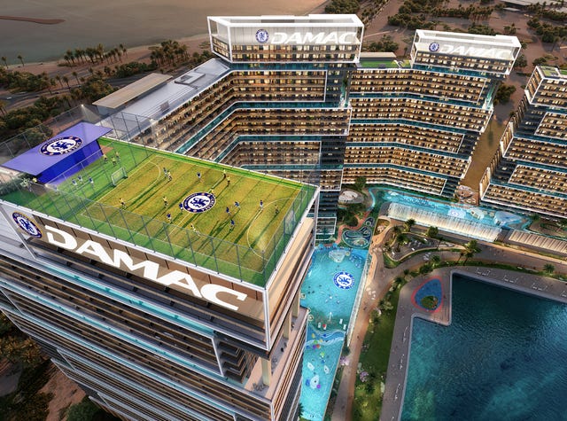 望下車仔波衫心口,應該會記得車路士同杜拜地產佬DAMAC合作,車仔要將佢哋個名掛喺心口,而對面就會喺杜拜起「Chelsea Residences」。諗住只係啅頭,吹下水,點知最新嘅花生消息係,呢個全球首個足球主題住宅項目 ,受歡迎程度可能遠超我哋想像!