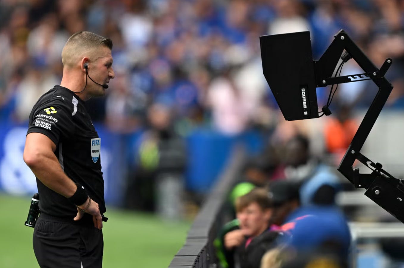所以VAR球證索爾茲伯里主動叫主球證去睇片,呢個舉動本身就已經違規。但最弔詭嘅係:既然程序錯咗,點解個波最後都係冇判入?