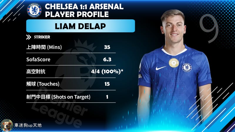 雖然入波係符碌,但佢喺防守端嘅貢獻就係實打實嘅。面對阿仙奴嘅高空轟炸,佢全場錄得 80% 高空對抗成功率,加上 6 次解圍。喺下半場打少個、被對手圍攻嘅時候,正正係靠佢同科芬拿喺禁區內頂走無數傳中球,先至保得住 1:1 嘅戰果。入波靠運氣,防守靠拼搏,呢個就係細查今場嘅寫照。